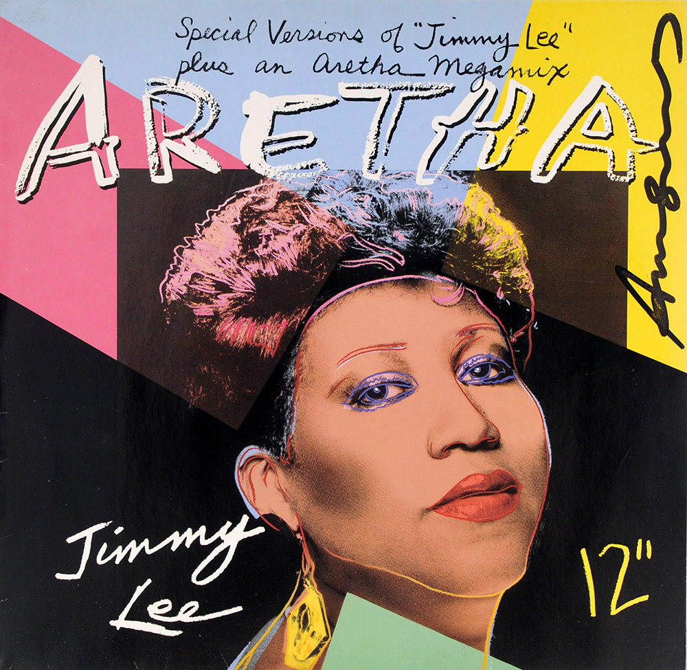 Andy Warhol Pittsburgh 1928 New York 1987 “Aretha” Disco di vinile firmato sulla copertina da Andy Warhol, copertina e disegno al retro realizzato da Andy Warhol Pubblicato su Paul Marechal – Prestel, New York 1946- 1987 n. 48 – 4 pagine Anno 1986 cm 31,5x31,5