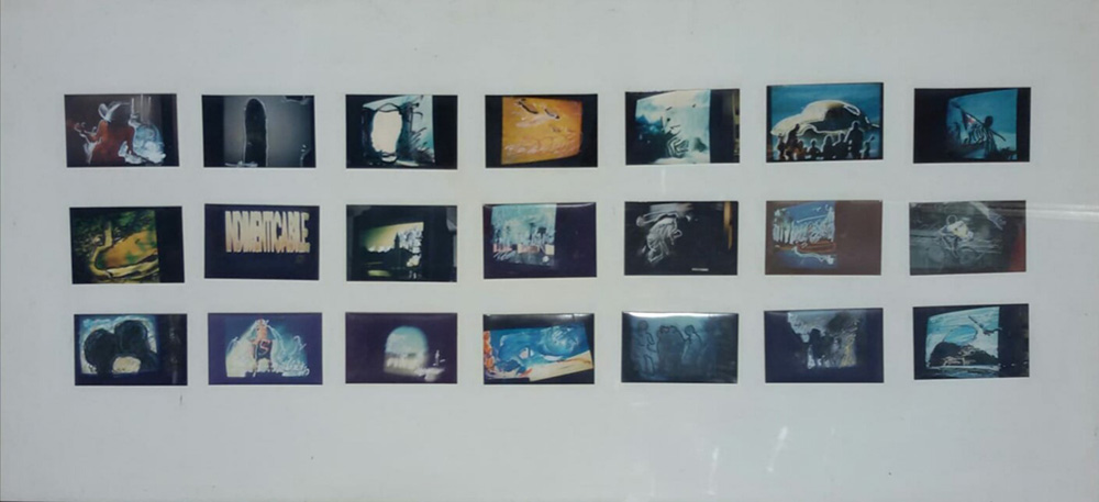 Mario Schifano Homs 1934 Roma 1998 “Senza titolo” Tecnica mista su fotografia Anno 1993 21 fotografie cm 10x15 applicate su tela cm 70x150 scritta dell’Autore sul telaio al centro Pubblicato su catalogo “A prescindere”, a cura di Achille Bonito Oliva Certificato di autenticità e archiviazione Monica Schifano