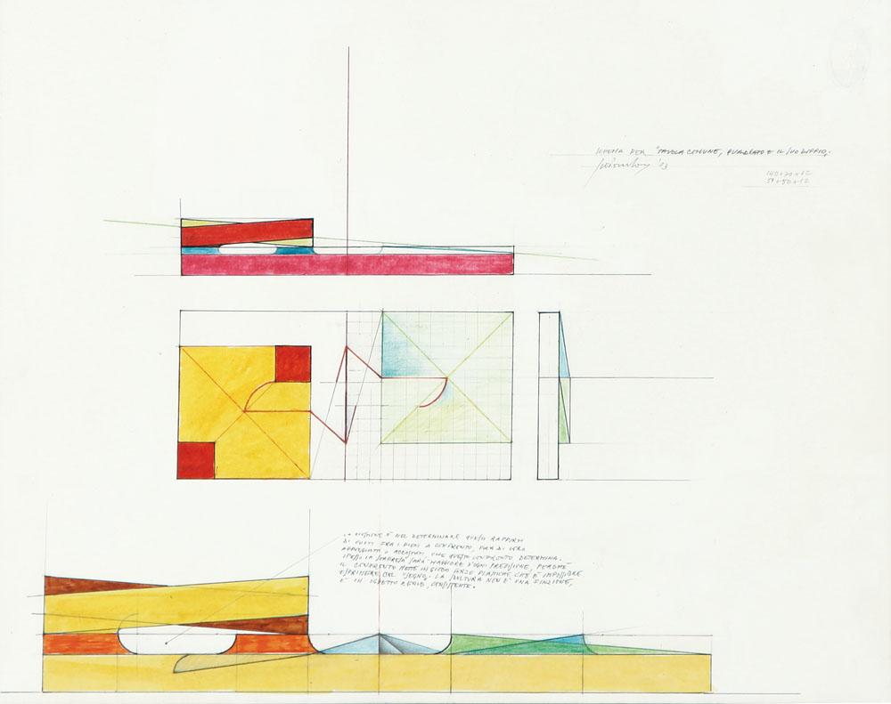 GIO POMODORO Orciano di Pesaro 1930 - Milano 21/12/2002 Schema per "Tavola...