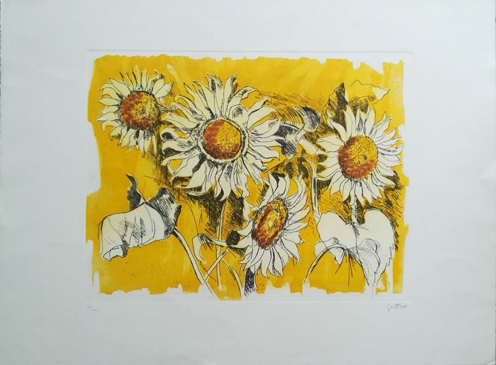 Renato Guttuso Bagheria 1911 Roma 1987 “I girasoli” Acquaforte acquatinta cm 56x75,5 Esemplare XL/XXX Firma in basso a destra Esemplare in basso a sinistra Grafica d’arte Lombardo, Roma