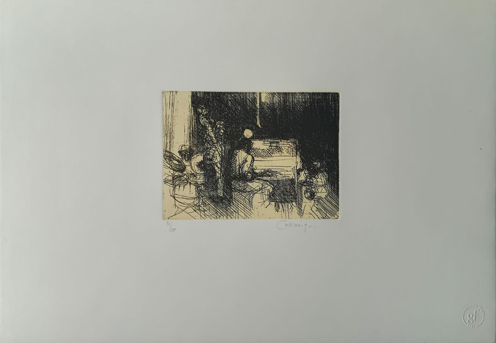 Giancarlo Cazzaniga Ancona 1930 Monza 2013 “Ancona jazz” Cartella comprensiva di due incisioni Esemplari n. 96/100 in basso a sinistra cm 70x50 Edizione L’incontro