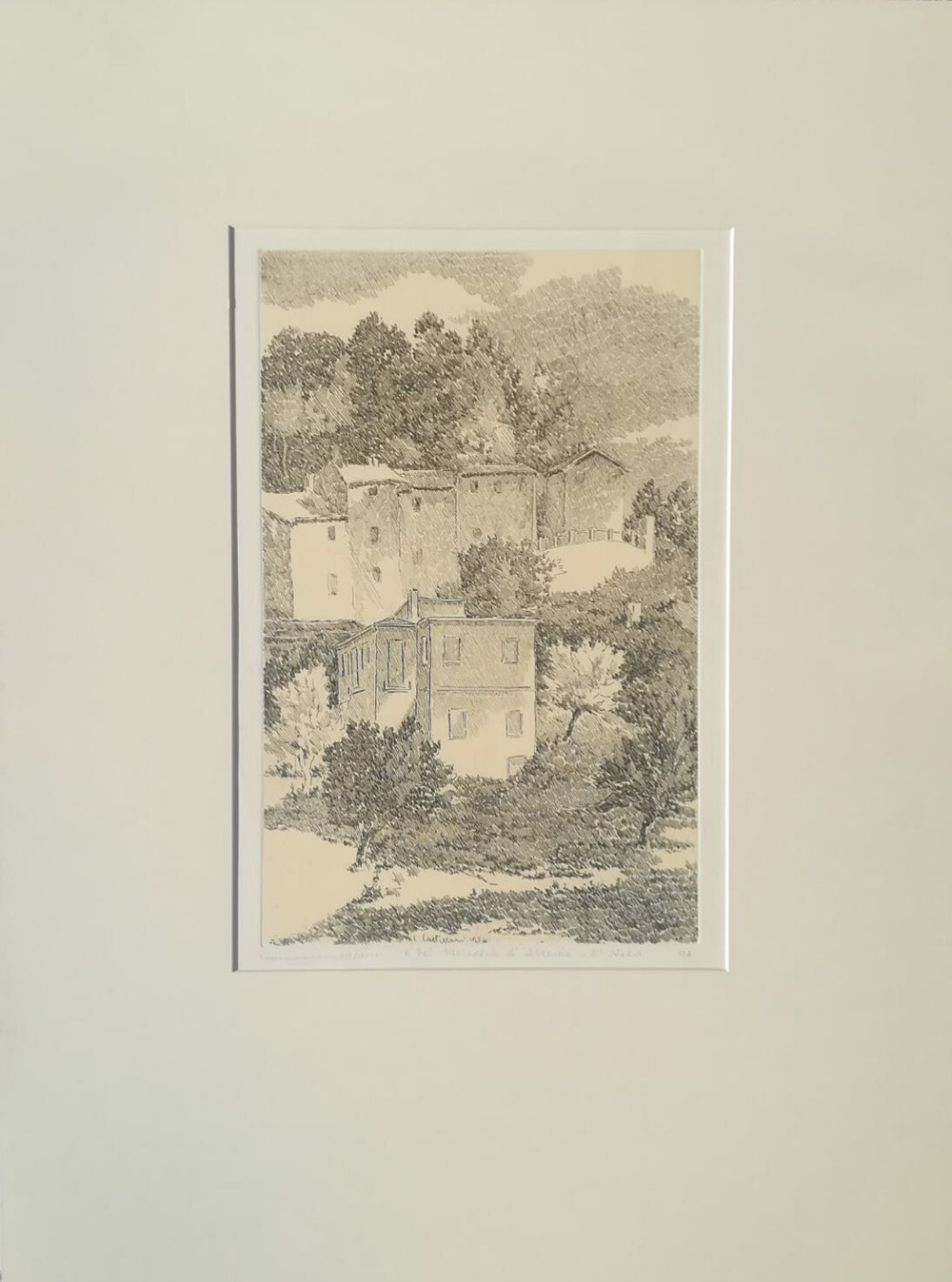 Leonardo Castellani Faenza 1896 Urbino 1984 “Dal mercatale di Arcevia” Acquaforte Anno 1954 cm 70x50 Esemplare p.d.a. Firma in basso a sinistra Titolo, esemplare in basso al centro