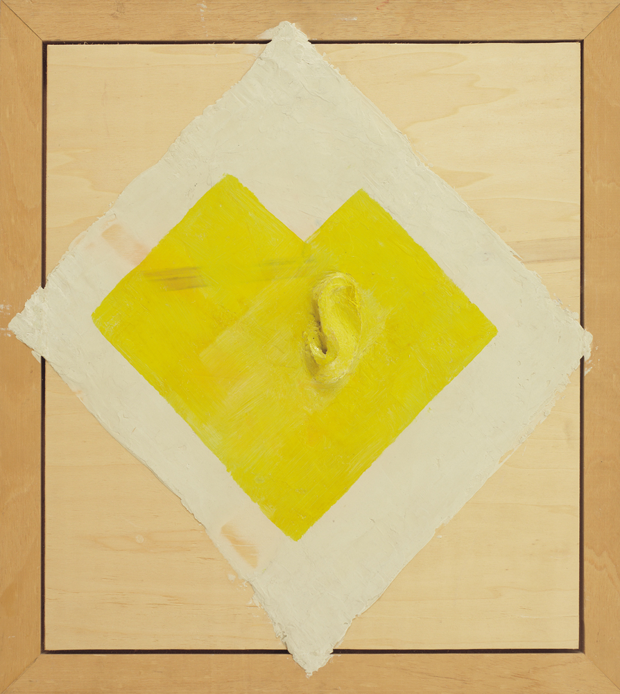 GIANNI DESSI` Roma 19/01/1955 Senza titolo, 1998 olio e tecnica mista su legno cm. 68x59, firma e anno al retro, dichiarazione d'autenticità dell'artista su foto.
