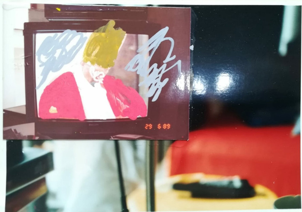 Mario Schifano Homs 1934 Roma 1998 “Senza titolo” Fotografia dipinta cm 12,7x16,7 Anno 1989 Timbro a fuoco Schifano sul lato sinistro della foto Firma sul retro