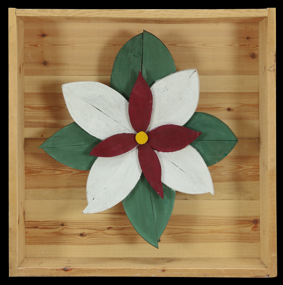MARIO CEROLI Castelfrentano 1938 Le ninfee, 1996 scultura in legno dipinto cm. 67x62x13 (dimensioni con teca 80x80x18), firma e anno in alto a sinistra sul petalo bianco, dichiarazione d'autenticità dell'artista su foto, certificato della Telemarket (BS) allegato.