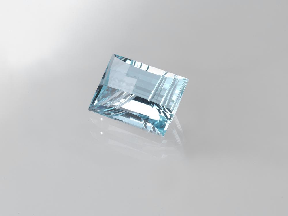 ACQUAMARINA CT 13.70 di forma rettangolare, taglio fantasia, mm 17,16x12,77x8,05 AQUAMARINE