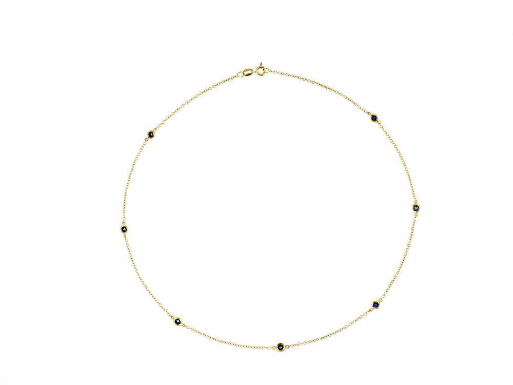 GIROCOLLO IN ORO E ZAFFIRI realizzato a maglia sottile impreziosita da zaffiri montati entro castoni a cipolla per ct 0,60 circa, punzone 750, lunghezza cm 42, g 3,4 circa SAPPHIRE AND YELLOW GOLD CHAIN NECKLACE
