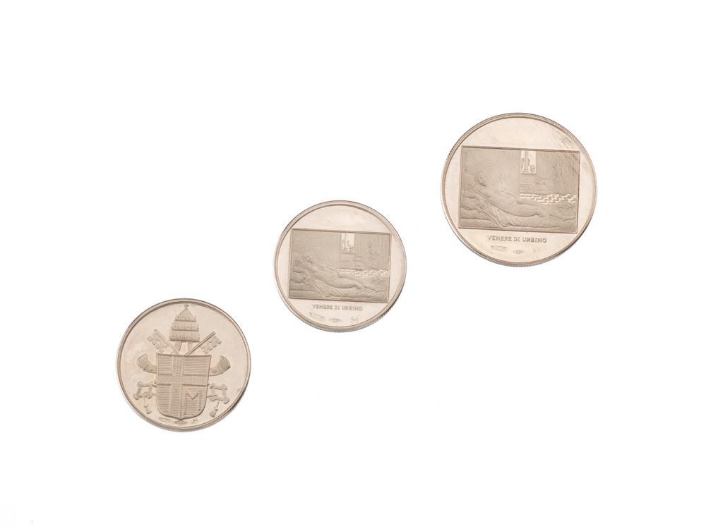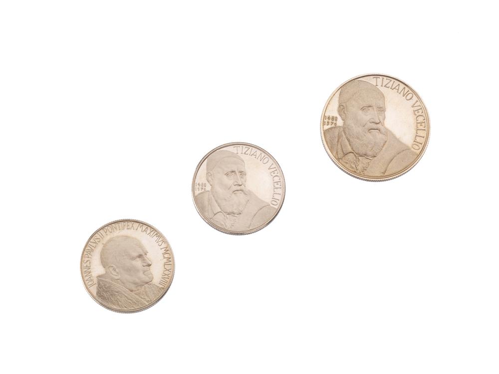 LOTTO DI TRE MONETE COMMEMORATIVE IN ORO 9 K - Giovanni Paolo II, g 6 - Tiziano Vecellio, Venere di Urbino, g 6 - Tiziano Vecellio, Venere di Urbino, g 9 THREE 9 K COMMEMORATIVE COINS