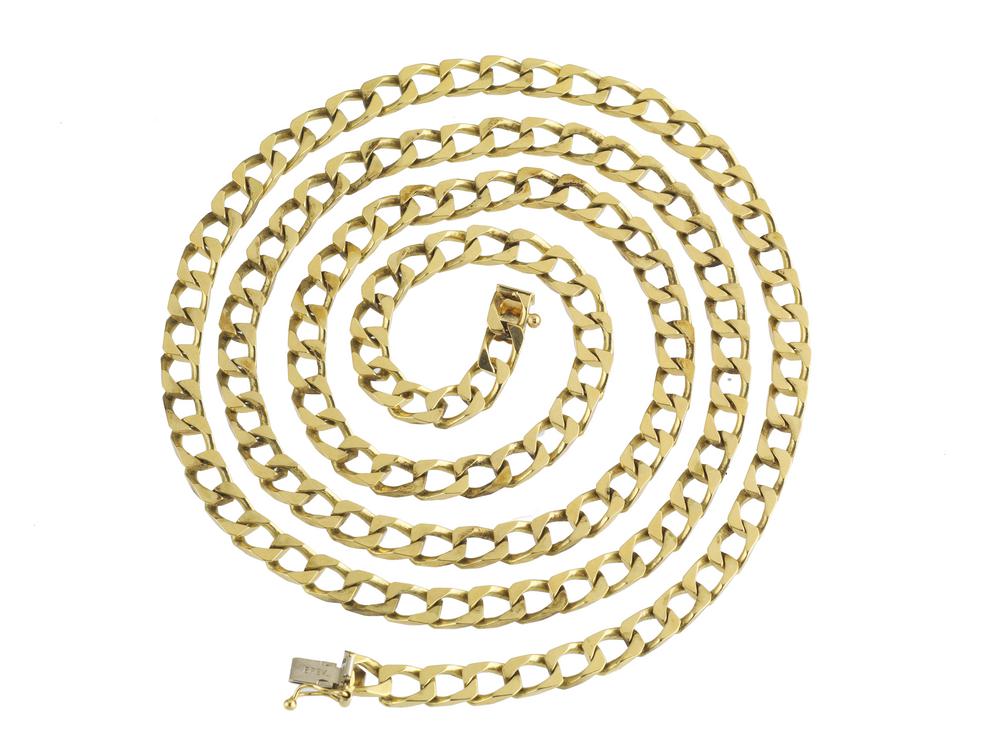 Lotto 254 | LUNGA CATENA IN ORO GIALLO realizzata a maglia barbazzale da mm 5,5, punzone...