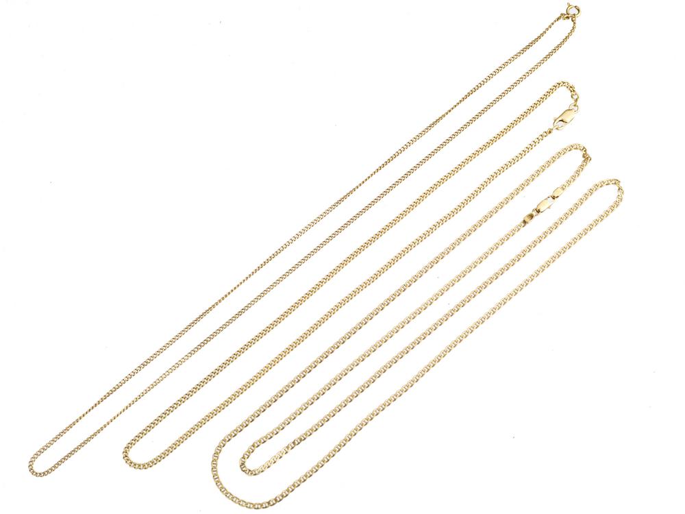 TRE CATENE IN ORO GIALLO punzoni 750, lunghezze: cm 54, cm 65,5 e cm 90,5, peso complessivo g 51 THREE YELLOW GOLD CHAINS