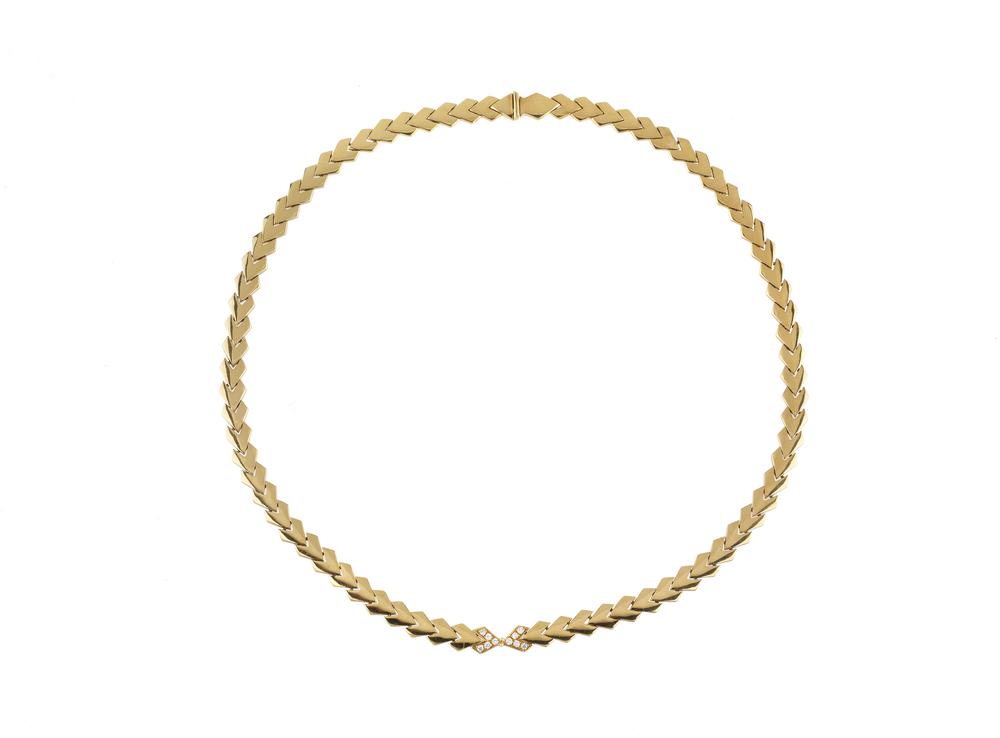COLLANA IN ORO GIALLO E DIAMANTI realizzata ad una fila di maglie a freccia,...