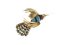 SPILLA, ANNI '60, IN ORO GIALLO, TURCHESI, ZAFFIRI, RUBINI E PERLE COLTIVATE disegnata come un volatile il cui corpo centrale è decorato da turchesi, zaffiri e rubini, la coda da perle grigie, diametro mm 3-6, lunghezza cm 8, g 36,5 circa TURQUOISE, SAPPHIRE, RUBY, PEARL AND YELLOW GOLD BROOCH, 1960s