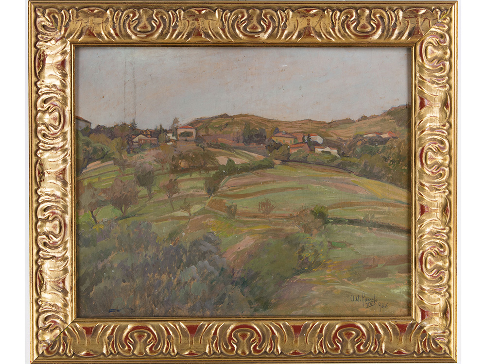 Firma illeggibile (XX secolo) Paesaggio 40x50 cm Olio su compensato