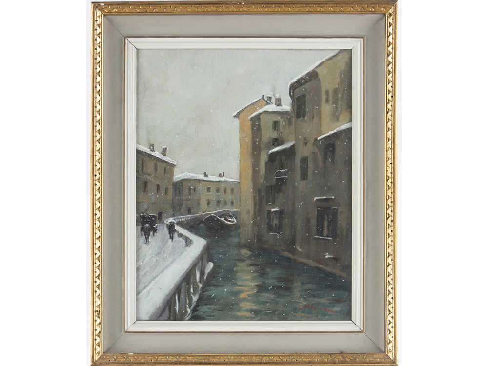 Firma illeggibile (XX secolo) Milano Via Vallone 50x40 cm Olio su tela