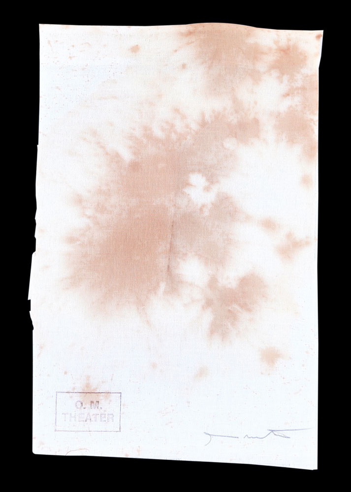 HERMANN NITSCH Vienna 1938 Senza titolo sangue su tela cm. 33,3x21,5; firma dell'artista e timbro della O.M. Theater al retro, autentica per provenienza dello Studio d'Arte e Architettura Divisodue su foto.