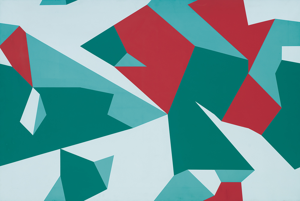 SERGIO LOMBARDO Roma 01/12/1939 Pittura stocastica, 1981 vinilico su tela cm. 100x150, firma, titolo e anno (riautenticato nel 2004) al retro, dichiarazione d'autenticità dell'artista su foto, opera senza cornice.
