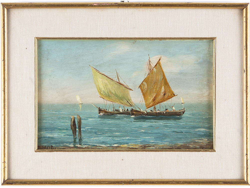 C.Mori (XX secolo) Marina 20x32 cm Olio compesato