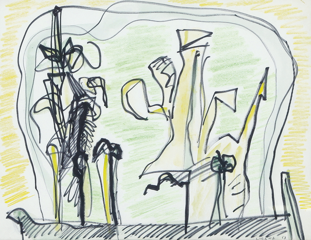 RICCARDO LICATA Torino 20/12/1929 Composizione, 1963 tecnica mista su carta...