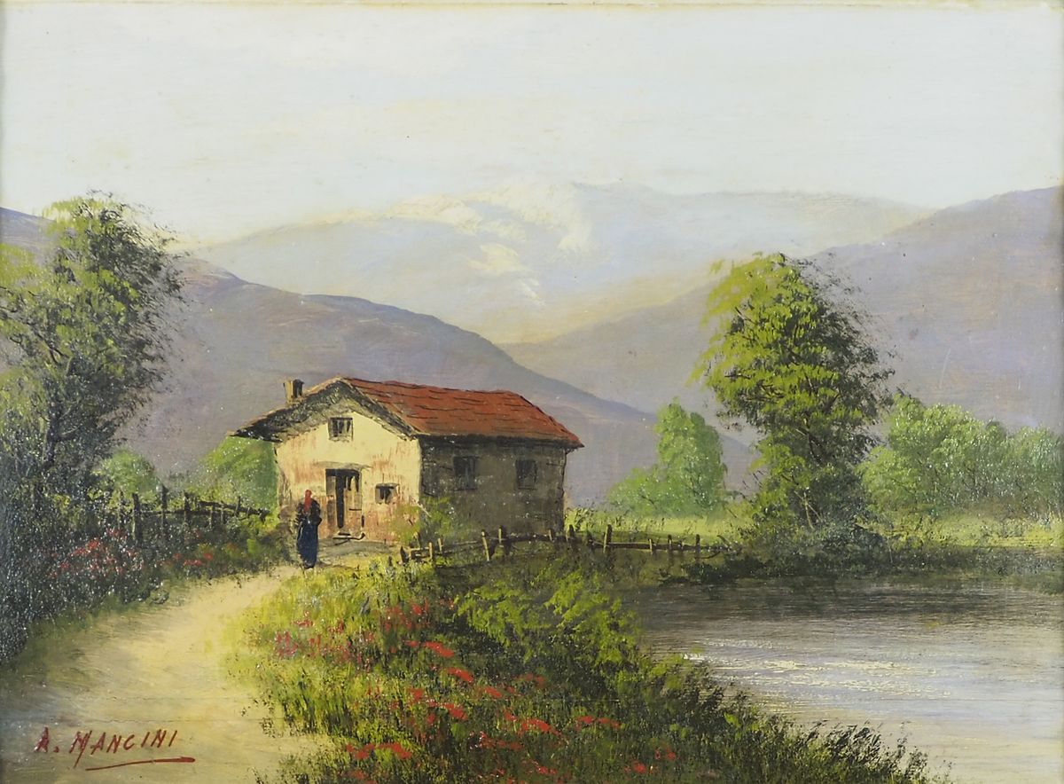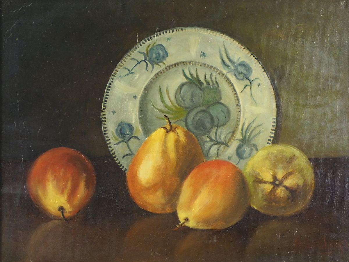Lotto 5 | Lotto di 2 opere ad olio raffiguranti paesaggio e natura morta. Misure diverse.