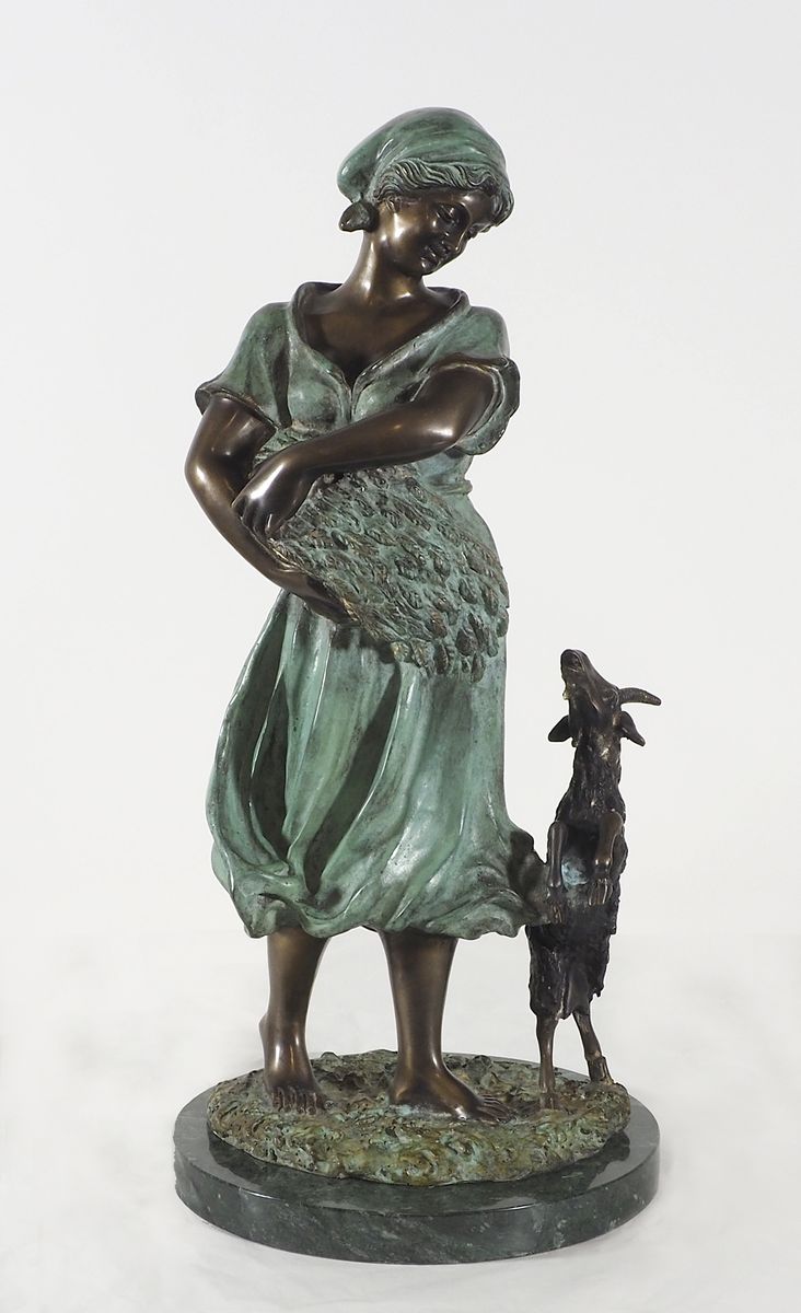 Scultura in bronzo a due colori raffigurante giovane contadina, base in marmo. H. tot cm. 62.
