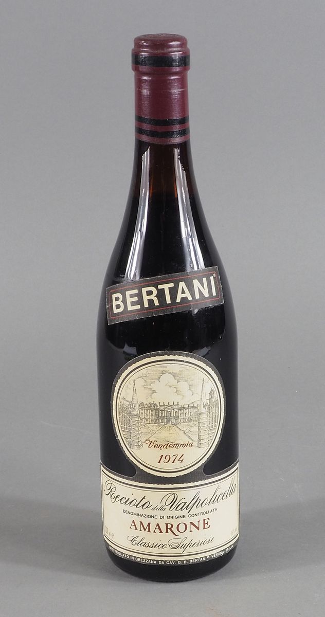 Bottiglia di vino Bertani Amarone Recioto della Valpolicella, annata 1974; classica superiore.