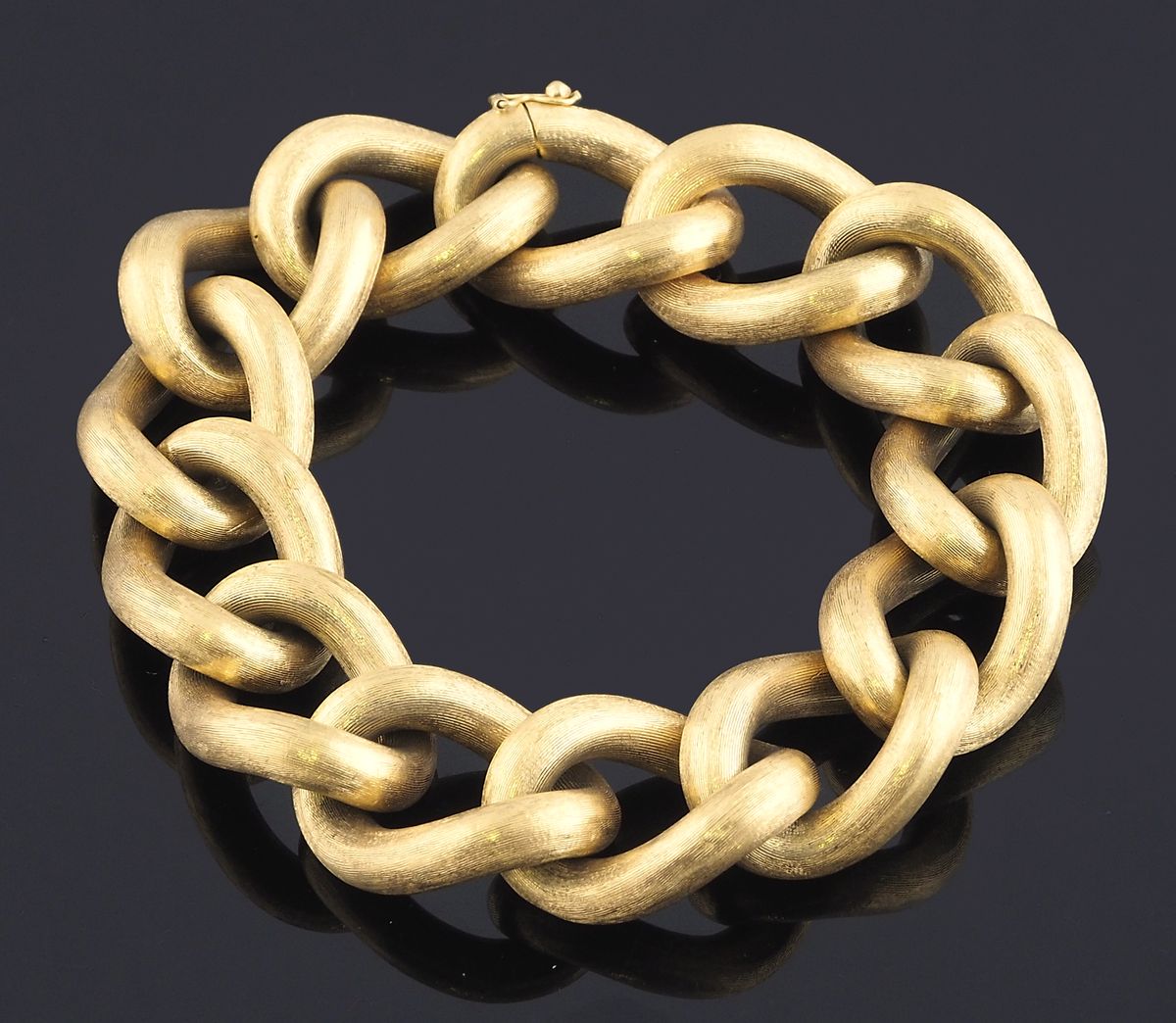 Bracciale in oro giallo satinato ad anelli intrecciati, gr 63, Uno A Erre