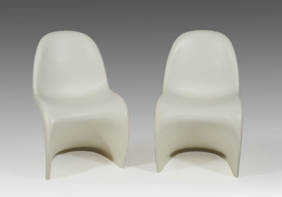 Vitra: lotto di 4 sedie bianche modello Panton. Disegno di V. Panton.