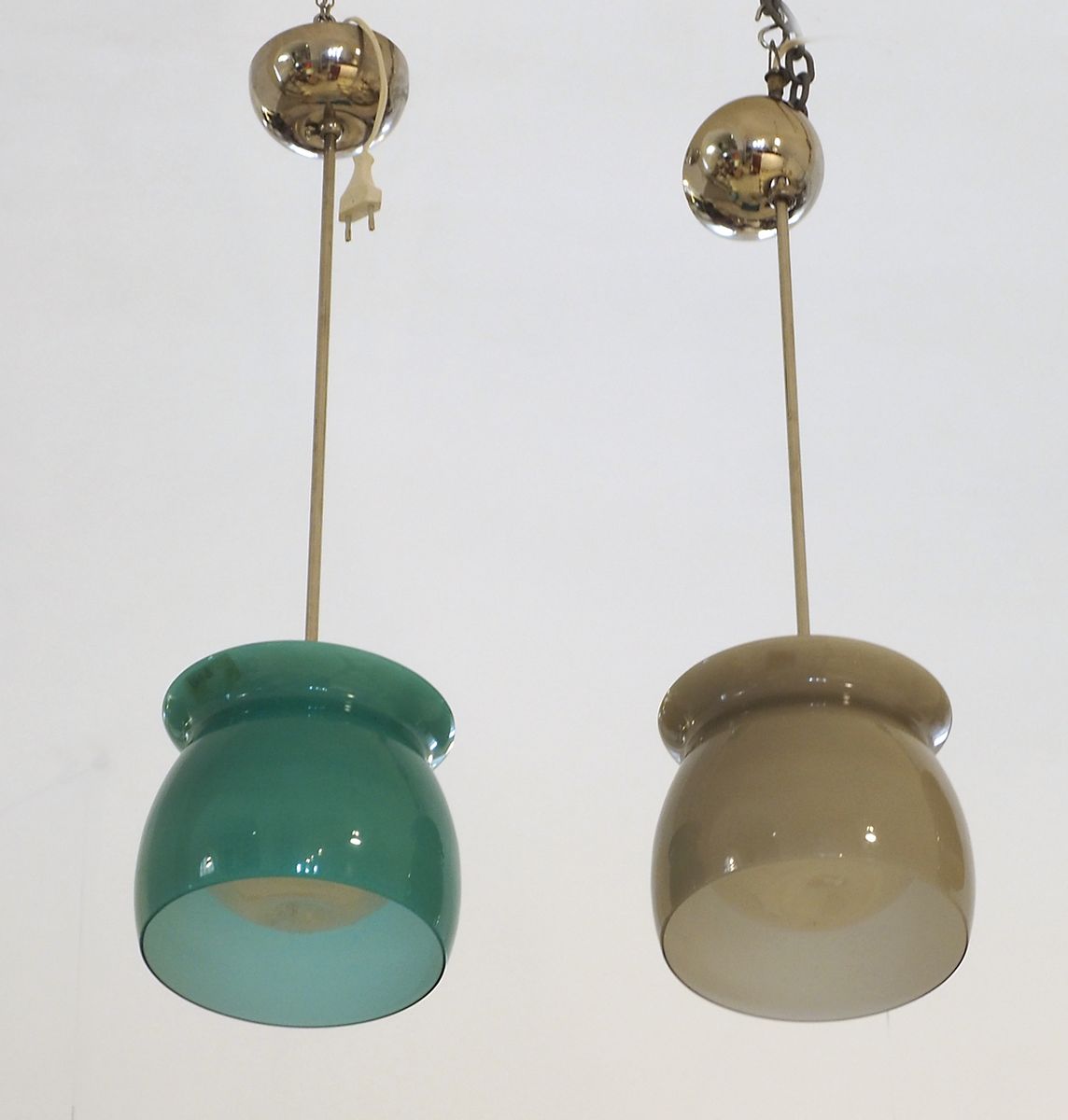 Venini: coppia di lampade a sospensione in vetro, modello 800.3, Anni '60. H....