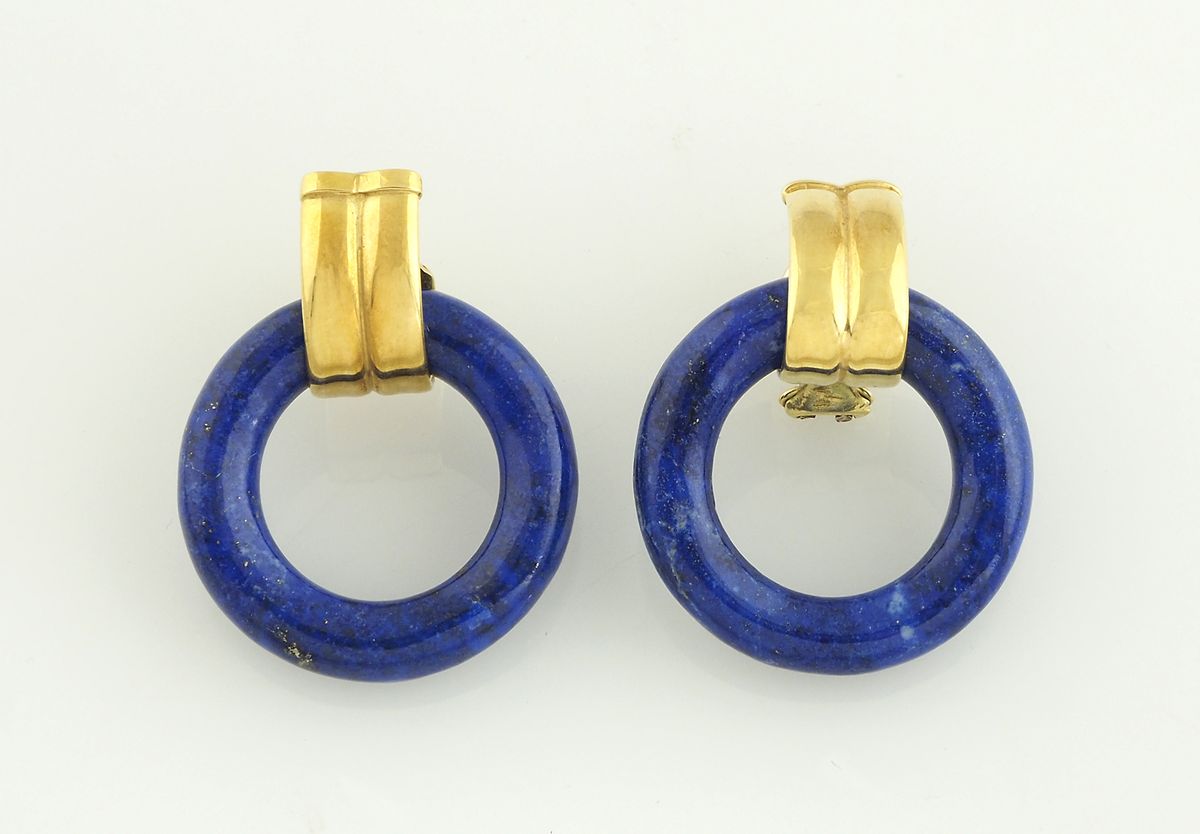 Orecchini composti da anelli in laspislazzuli e chiusura in oro giallo