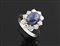 Lotto 110 | Anello in oro bianco a margherita con diamanti e zaffiro centrale cabochon....