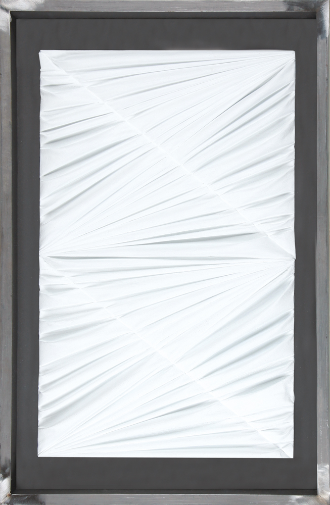 UMBERTO MARIANI Milano 16/11/1936  Senza titolo, 2011 acrilico e piombo operato applicato su tavola cm. 65,5x40,5; con cornice dell'artista cm. 80x52, firma e anno al retro, dichiarazione d'autenticità dell'artista su foto.