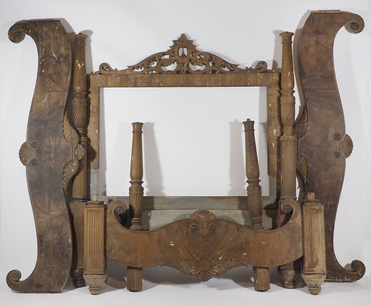 Antico letto matrimoniale a baldacchino in legno con colonne scolpite. cm....