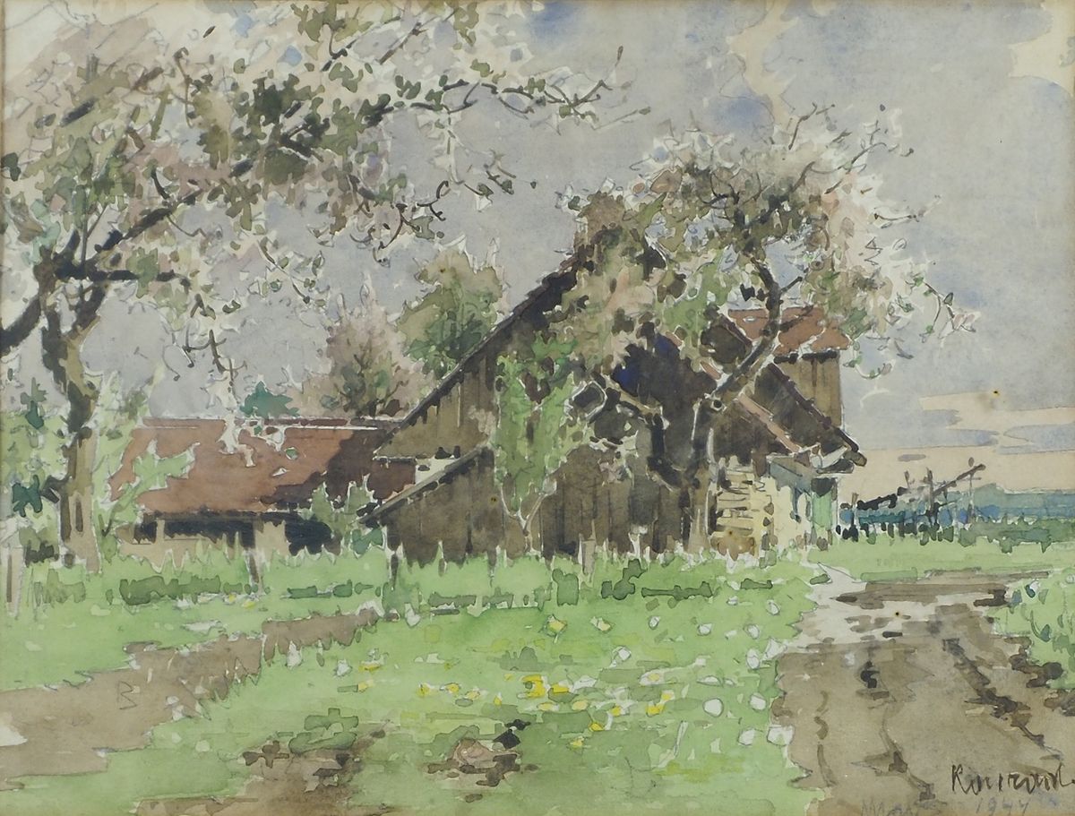 Lotto di varie opere tra cui acquerelli firmati Konrad. Misure diverse.