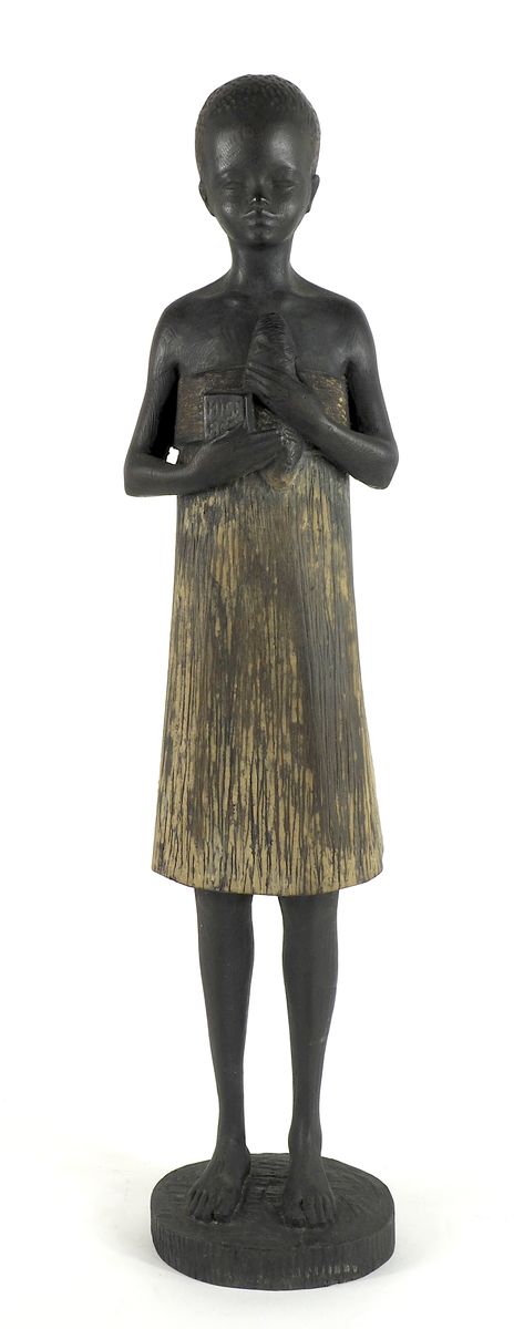 Josef Mussner Zorz Contemporaneo natio di Ortisei "Misereor" h- cm. 68 - scultura lignea Sotto la base: etichetta con dati dell'opera; etichetta Premio Assesorato alla cultura.