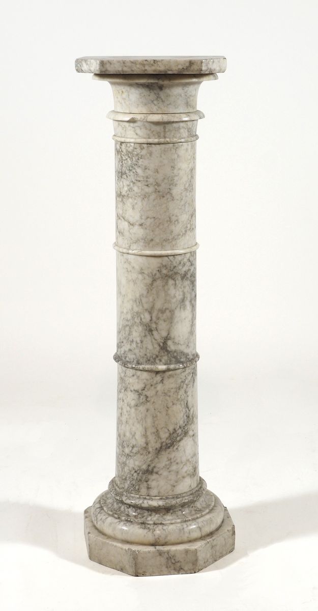 Colonna in marmo bianco con venature. H. cm. 93. (sbeccature).