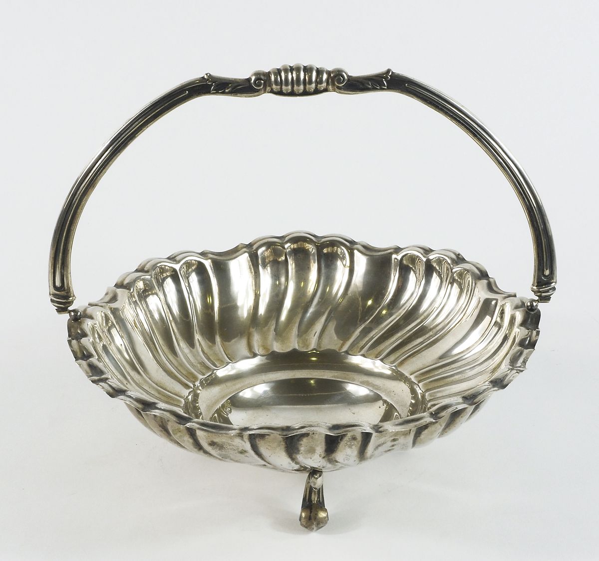 Cestino in argento sbalzato con manico centrale. gr. 300.