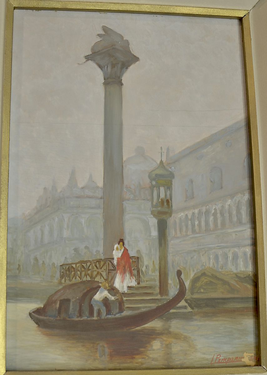 Pittore del '900 "Gondola a Venezia" cm. 40x28 - olio su compensato Firmato b. a d.