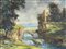 Franzetti "Castello sul fiume" cm. 18x24 - tecnica mista Firmato b. a s.