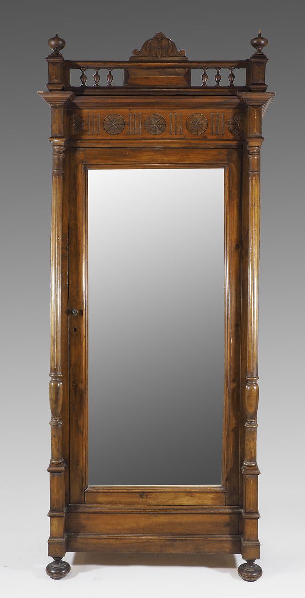 Armadio in legno con grande anta a specchio. cm. 240x104x60.