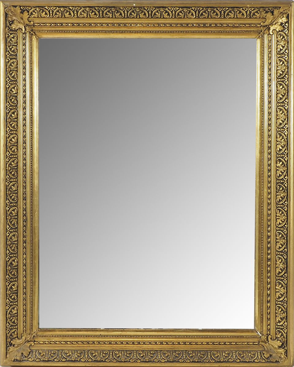 Specchio rettangoalre da parete con cornice in legno dorato. cm. tot 100x80.