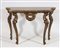 Consolle in legno su alte gambe mosse scolpite, piano sagomato in marmo....