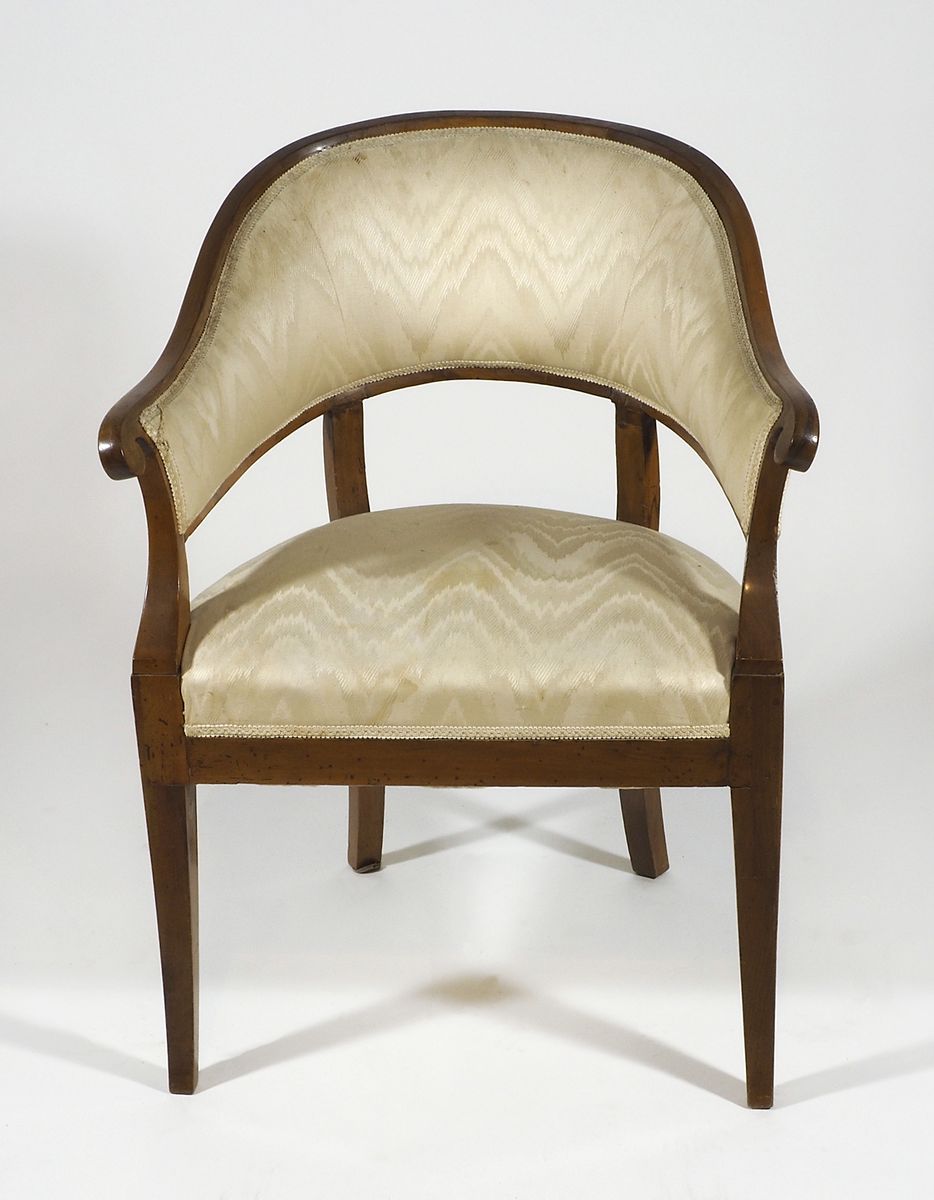 Poltrona a pozzetto in legno chiaro. XIX secolo.