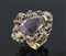 Grande anello in oro rosa 14 kt e argento, montatura traforata con ametista...