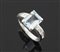 Anello in oro bianco centrato da acquamarina taglio smeraldo per ca ct 3, ai lati diamanti taglio brillante per tot ca ct 0,33. Misura 15
