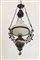 Lotto 259 | Lampadario in ottone dorato e ceramica policroma con campana in vetro.