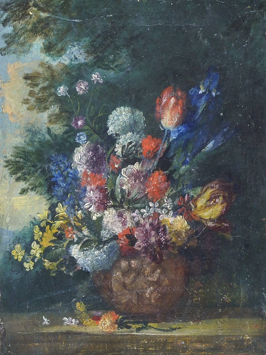 Artista contemporaneo "Fiori nel paesaggio" cm. 26x19 - olio su tela