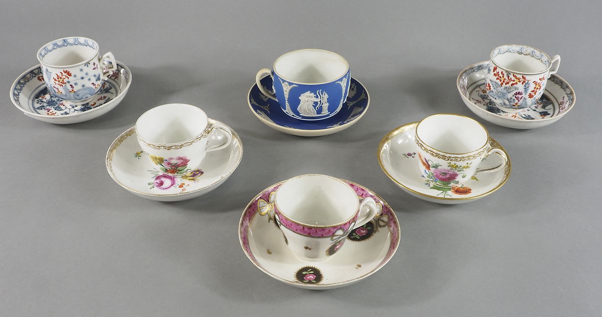 Lotto 279 | Lotto di 6 tazze in porcellana policroma. Epoche diverse. (difetti).