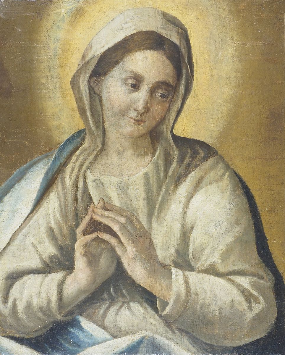Maestro del XVIII secolo "In preghiera" cm. 53x43 - olio su tela foderata