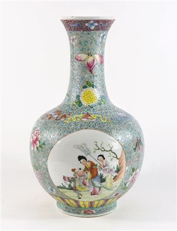 Vaso in porcellana policroma decorato a motivi orientali e floreali. H. cm....