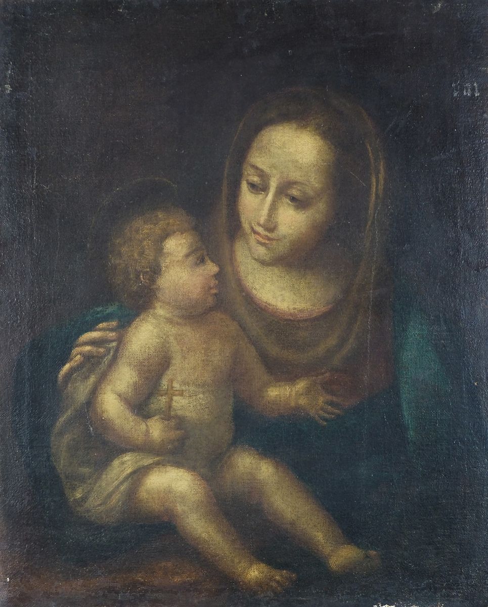 Maestro del XIX secolo "Madonna con bambino" cm. 77x62 - olio su tela foderata